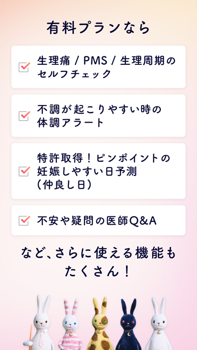 - 「データ分析」「生理周期の振り返り」などの一部サポート機能は、プレミアムコースのみ
