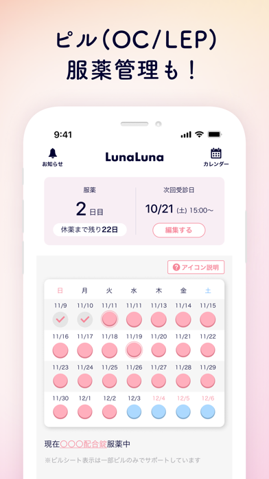生理周期を管理できるアプリです。