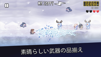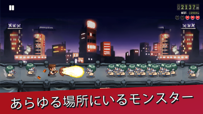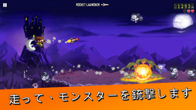 ゲーム内容は画面右方向に走りつづける主人公が障害物やモンスターにぶつからないように、ジャンプと武器で対処します。モンスターは武器だけでなく、ジャンプで踏みつぶすこともできます。