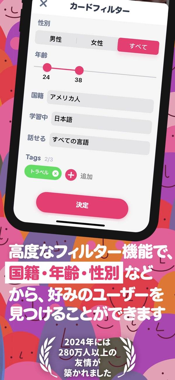 また、特定の地域に興味がある方は、その地域の人々とつながる機能も。さらに、フィルタリング機能を活用すれば、ぴったりの相手を見つけられます。