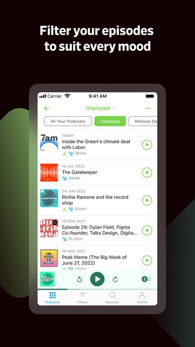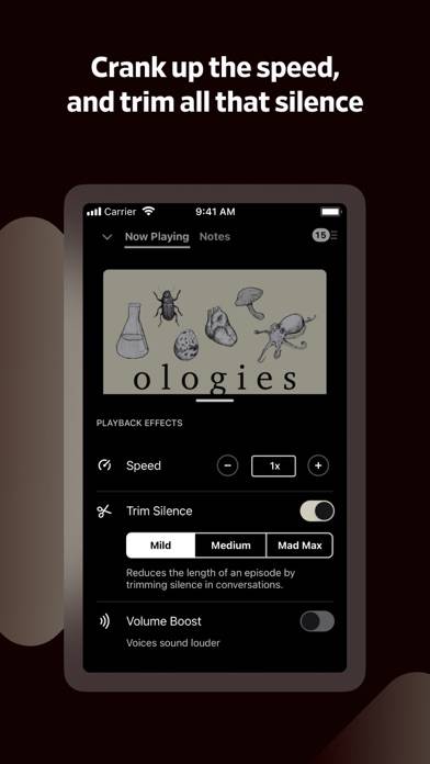 また、このアプリは多彩な再生機能を搭載しています。次のエピソードの自動キュー作成、無音時間のカット、再生スピードの調整、ボリュームブーストなど、豊富な機能を使ってリスニング体験を自分好みにカスタマイズすることが可能です。
