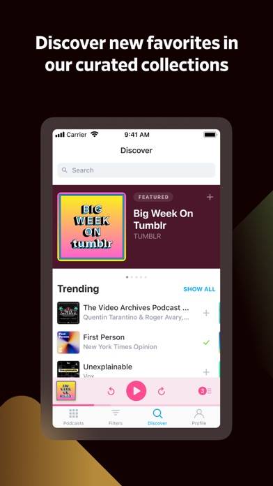 - 豊富なコンテンツから、自分の興味のあるポッドキャストを簡単検索