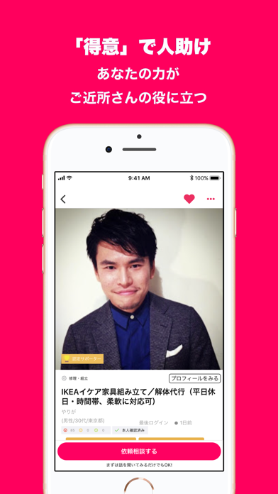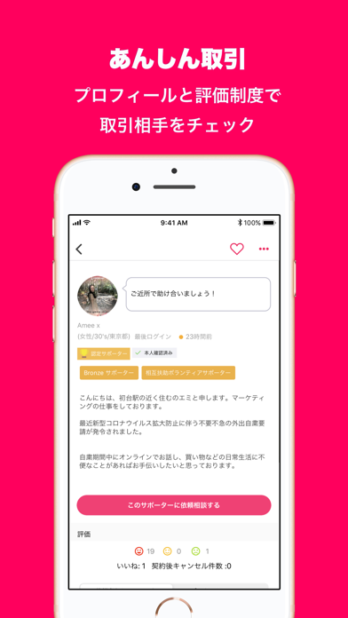- 金銭のやりとりはアプリ側で仲介。口座番号を相手に知られる心配なし