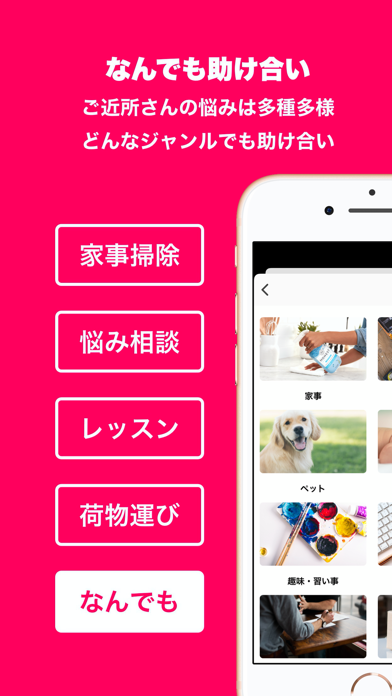 また安全な決済システムを通じて、信頼できるやりとりが可能です。本アプリを使うことで近所の人々と助け合うことができ、何気ない毎日を豊かにできるでしょう。