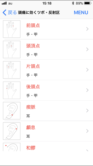 症状や目的に応じて適切なツボを教えてくれます。画面上で悩みを選ぶだけで、関連するツボが一覧表示されるため、どこにいても簡単に自分に合ったツボを探せて便利。日常のちょっとした空き時間にも活用できるでしょう。