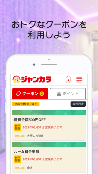 - ジャンカラの予約・清算・クーポン / ポイントの利用ができるアプリ