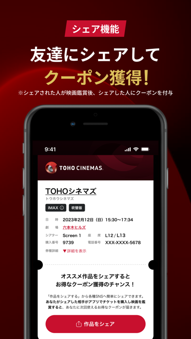 映画観賞後は感想を共有し、ほかの観客のレビューもチェックできます。アプリはレビューサイトと連携しており、星評価で簡単に人気の作品を知ることができます。視聴した人の意見を参考にできるので、ミスチョイスしてしまうリスクを抑えられるでしょう。
