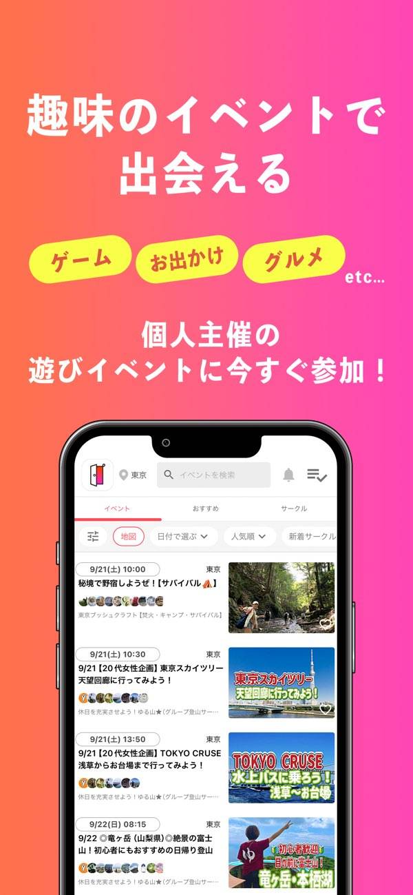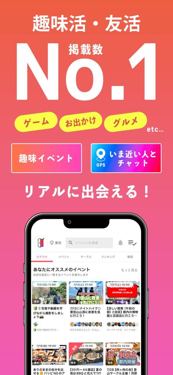 サークルやイベントを通じて友達作りをサポートするアプリ。共通の趣味や興味を持つ人と簡単につながることができます。オフラインでの交流も盛んに行われ、新しい友達や仲間を作りたい人におすすめ。もちろん実際に会うことを目的としていないコミュニティもあるので、アプリ上でのつがなりがほしい人も安心です。