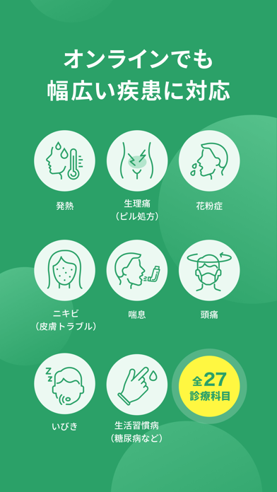 - 状態やデータを医療機関に送信し、スマホで診察を受けられるアプリ