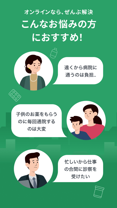 定期検診する必要があり、また引っ越しで通うのが難しくなったのでこちらのサービスを利用しています。予約から先生との面談、お支払いまでこのアプリで完結するので本当に便利です。薬は近くの処方箋で受け取ることもできますし、郵送で送ってもらうこともできます。