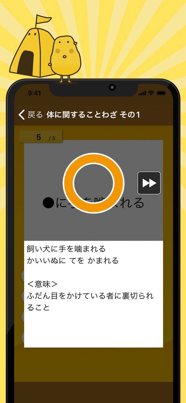 日本の伝統として引き継がれ、昔の人の知恵がたくさん詰まっている”ことわざ”。本や新聞、日常会話にもよく登場するので、ことわざを知らないと話が掴めないということもありますね。当アプリは知っておきたいことわざをジャンル別に110個収録したクイズアプリ。これからことわざを学びたいという方、ことわざを教えたいお子さんがいる方にオススメです。