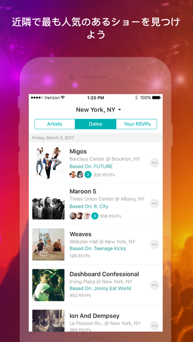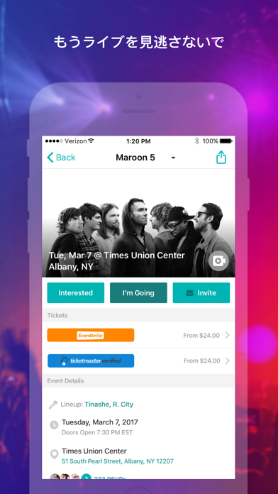 ライブ好き必携!よく聞く音楽からコンサート情報をひとまとめにできる