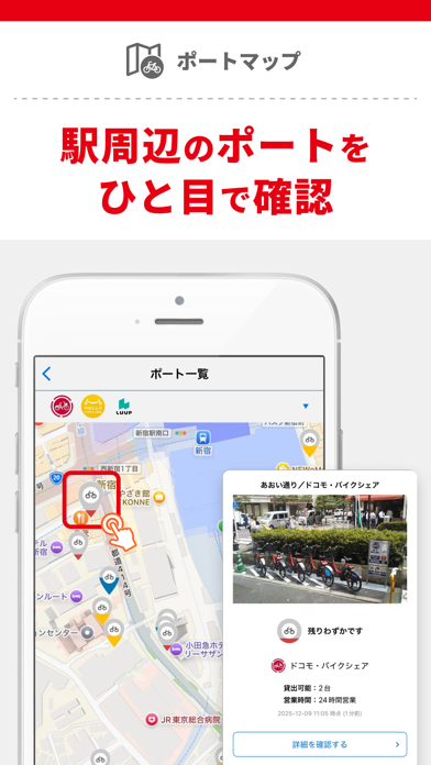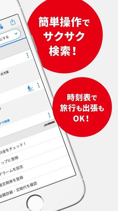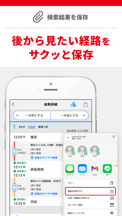 - 出発地から目的地までの経路を複数パターンで表示。早く着けるルートや乗り換えがラクな道順がすぐに見つかる