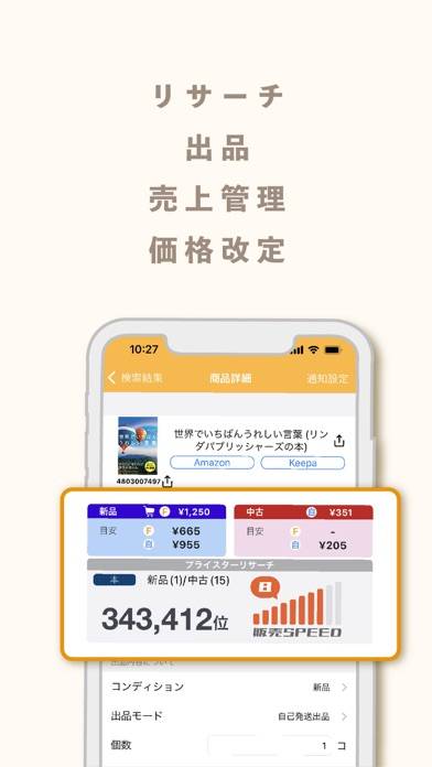 - バーコードから商品を読み取り、相場の検索や出品の予約が行える