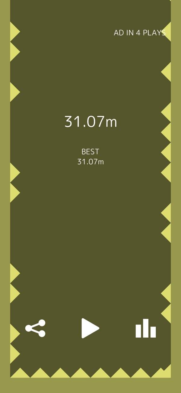 タップのみのシンプルな操作でありながら、障害物を回避する難しさがあります。タップのタイミングでボールの飛び方をコントロールできるのですが、そのタイミングを見つけるのが難しい……。操作は簡単ながらも、タップのタイミングを計る奥深さがあります。