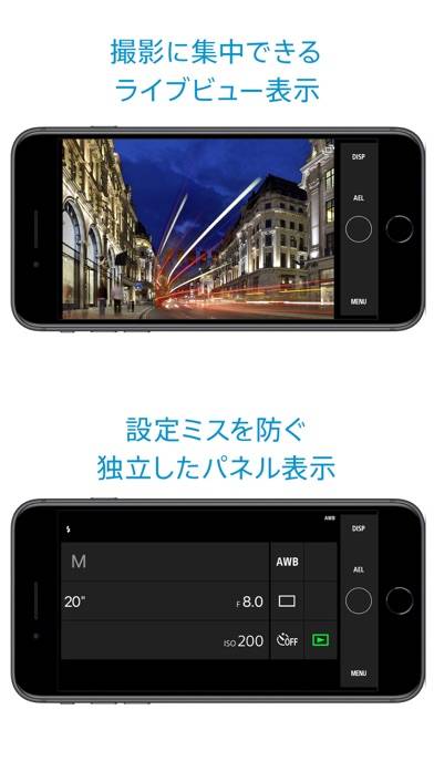 - 端末をカメラのリモコンとして利用できる。定点撮影に最適!