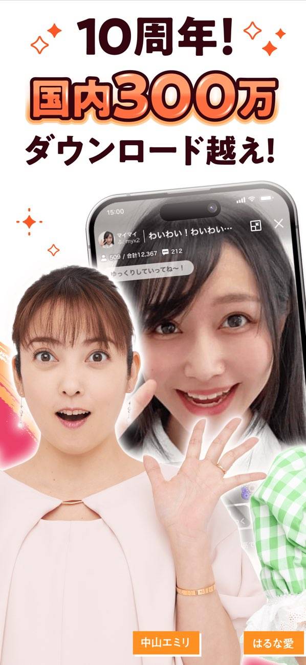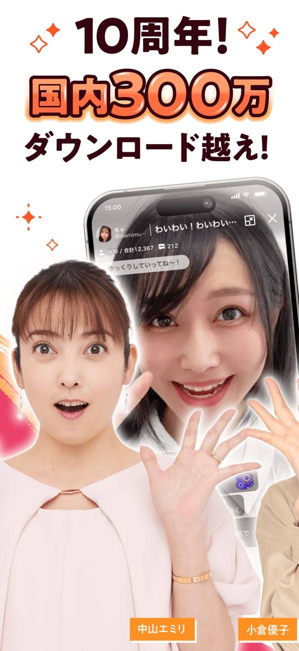 イベントが充実している配信アプリです。イベントで上位に入賞すれば、TVの番組にキャスティングしてもらえたり、CMに出演できたりします。