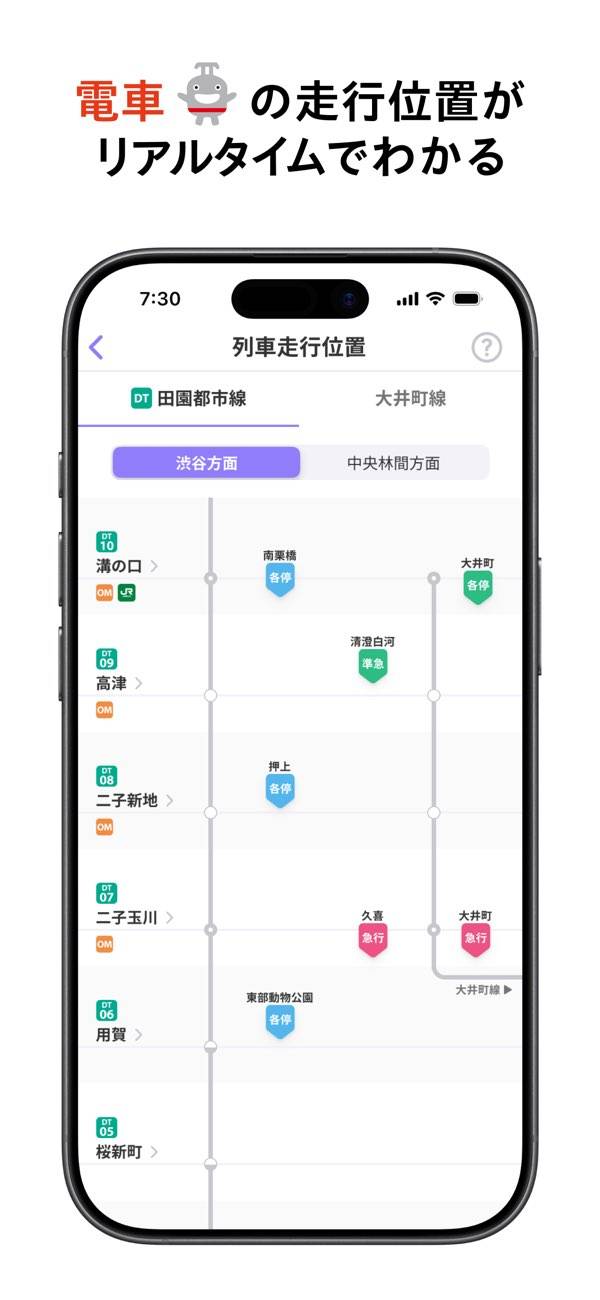 東急線を使う人向けに、時刻表や運行情報をまとめて確認できる移動サポートアプリです。遅延や運転見合わせが起きた際はプッシュ通知で状況がすぐ届き、列車の走行位置も把握できます。駅で立ち止まって調べる時間が減るため、通勤通学で慌てることがなくなります。