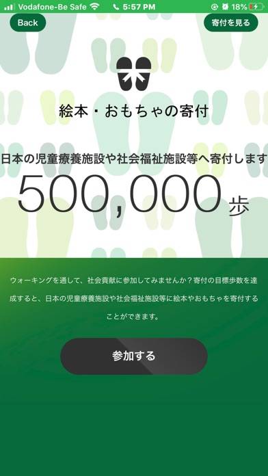 歩数を計測し、その結果を活用して社会貢献。ポケットやバッグにスマートフォンを入れて歩くだけで、歩数を記録。一定の歩数を達成すると、児童療養施設や社会福祉施設へ絵本やおもちゃが寄付されます。健康促進と同時に社会貢献ができるため、歩く楽しさが倍増します。