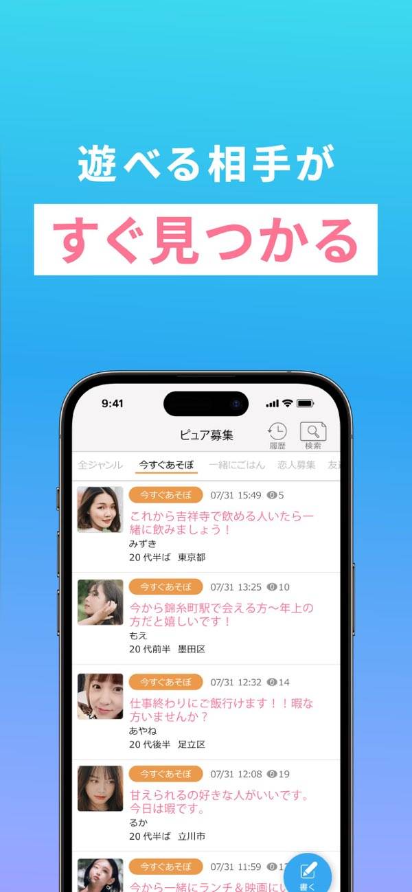 掲示板やプロフを通してお気に入りの相手を探せるので、出会いを求めている人に最適のアプリですね。老舗サービスの1つで安心感もあります。