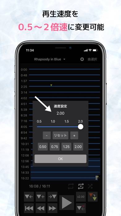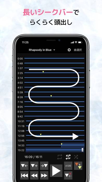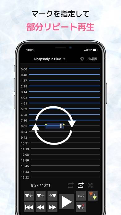 おおっこれは練習になる!聞きたい曲のポイントにマークをつければそこからワンタッチで再生できるし、速度変更も出来る!耳コピする人にはオススメ!
