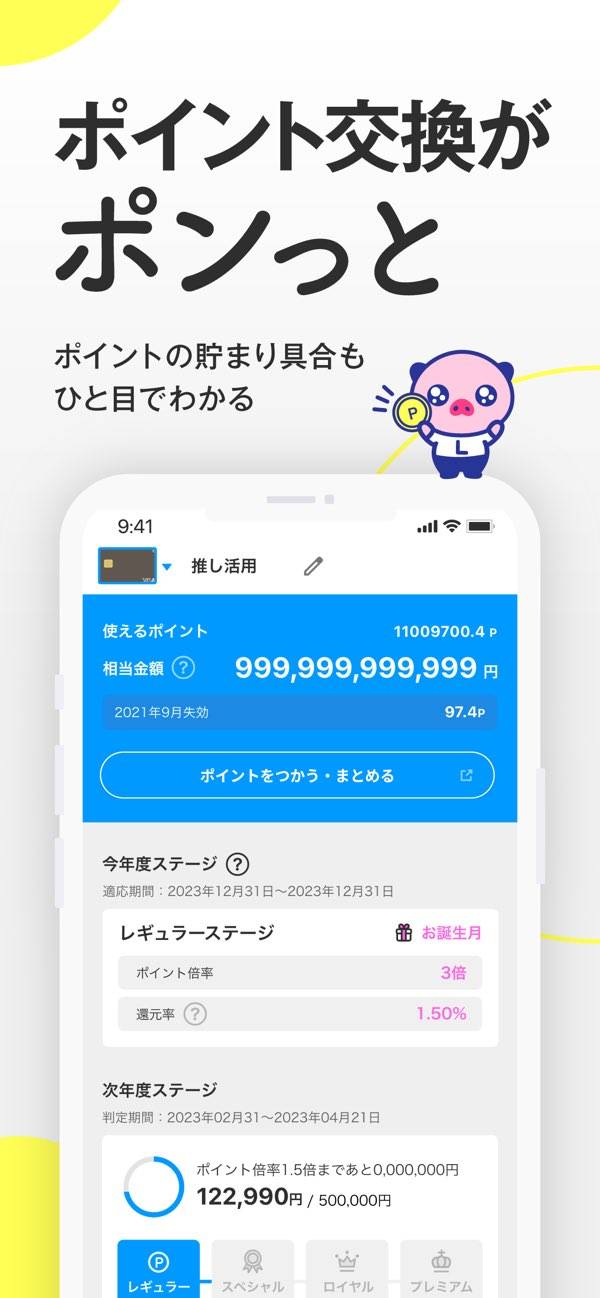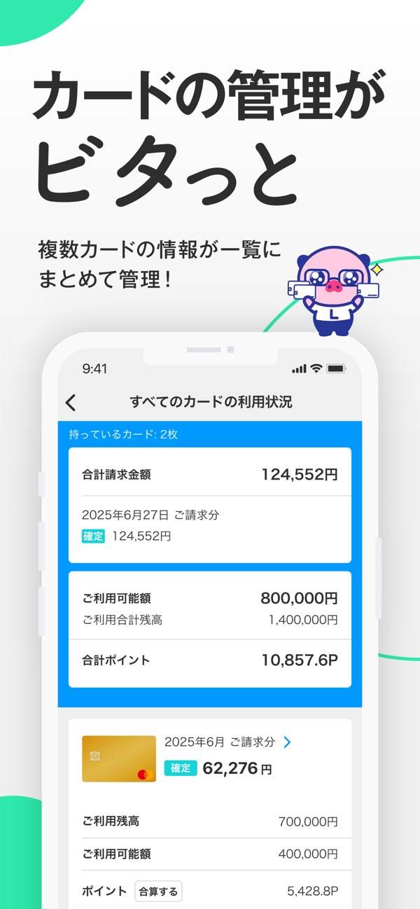 月々の請求金額や利用明細、利用可能枠や残高など、スマホから確認することが可能。また、貯まったポイントの確認や交換も手軽に行えます。これにより、自分の消費パターンを把握し、賢い選択をするための自己管理が容易になります。