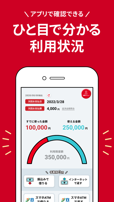アプリを起動すれば申し込み、借り入れ可能かの「1秒診断」、店舗やATMの検索ができるようになっています。いつどこでお金が必要になるかはわかりませんから、手早くぱぱっとお店が見つけられるのは嬉しいポイント。ローン計算機能でどれだけの返さなくてはならないかなどもすぐに分かるのでしっかり判断材料を揃えた上で借り入れの申し込みができます。借金は慎重は判断が必要ですから、本アプリのように計画的に物事が眺められるようになっているつくりは嬉しいポイント。どうしてもお金が必要になれば、本アプリを試してみましょう。