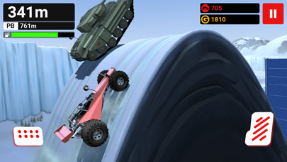 高低差が激しいコースをトエンジンとブレーキ操作で操って距離を伸ばすレーシングゲーム。最初はタイヤや安定性など、数値が低いのですぐ大破しますが、アプデを重ねていくと走破距離が伸びてくると楽しい。車も結構種類がありますが、コイン集めきる前に飽きそうかなー暇つぶしには良いです。
