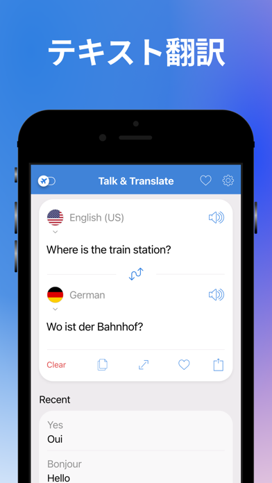 - テキスト&音声入力した文章を、翻訳して読み上げてくれる翻訳アプリ