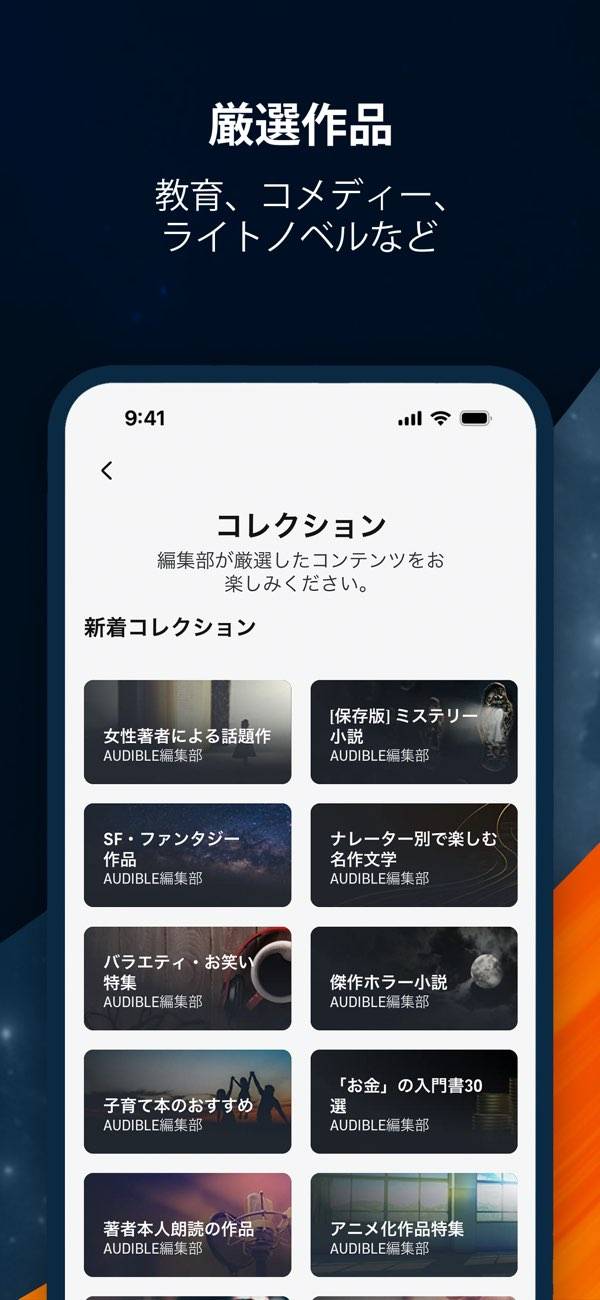 幅広いジャンルの本を取り揃えている、Amazonが母体のオーディオブックサービス。有料会員になると、20万以上の作品を定額で聴き放題になります。朗読もプロの声優さんや本の著者自身が担当しており臨場感も抜群。