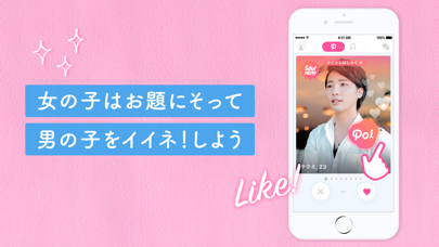 女性主導で出会いを探せる恋活系のマッチングアプリです。見た目重視なので、イケメンが多く見た目が好みの男性を探せます。男性も無料で出会う方法があったり、自分のモテ度がわかったりと使いやすいです。そのため本アプリは、肉食女子や草食男子に向いています。