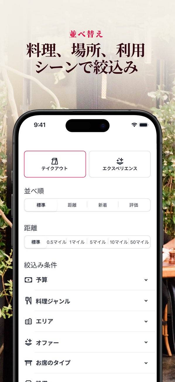 - 空き状況やデリバリーの有無など、細かい情報も網羅したグルメアプリ