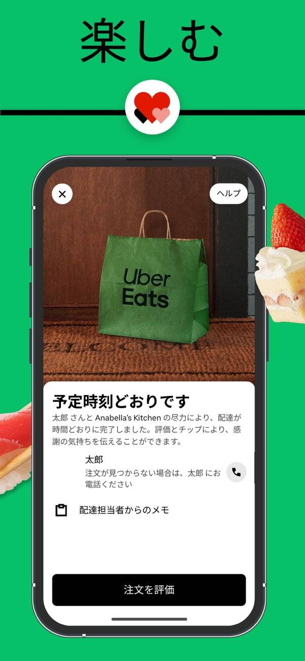 スマホで食べたい物を注文、配達してくれるから、どこに居ても楽に頼めて良いけど、少し配達料金があるから割高にはなります。