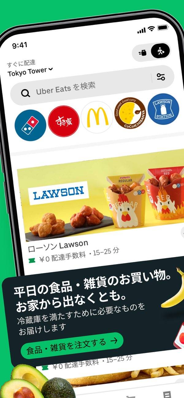 人気のチェーン店から地元のレストランまで、加盟店数の多さが魅力です。メニュー数は日々更新されるため、フードデリバリーサービスを頻繁に使う人でも飽きずに注文できます。料理だけでなく、食品・雑貨の配達も可能です。