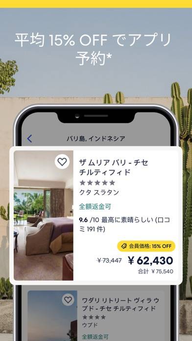 ホテルの料金比較が一気に見れるから便利です。割引率から残室数まで表示されるのですごく見やすい。もっと詳しくホテルの詳細を見たい人はアプリよりもサイト版のほうで見るといいですよ。アプリで探してサイトで検索するといいかも。
