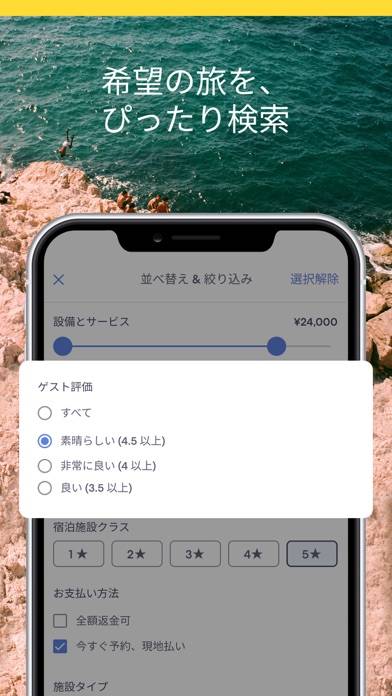 検索条件を細かく設定して、自分に合ったホテルや宿泊先を見つけられます。洗濯機やキッチン付きなどの設備はもちろん、ペットOKといった目的別の絞り込みにも対応。宿泊者の口コミもチェックできるので、安心して選べます。世界中のホテルから比較しながら、理想の滞在先が見つかりますよ。