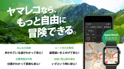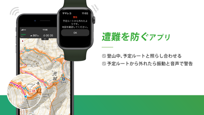 - 登山ルートをダンロードすれば、電波の届かない山の中でも使える