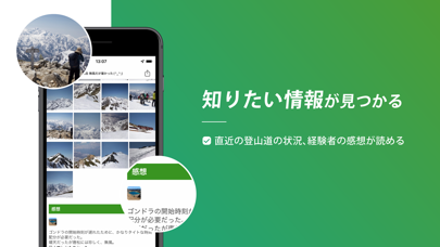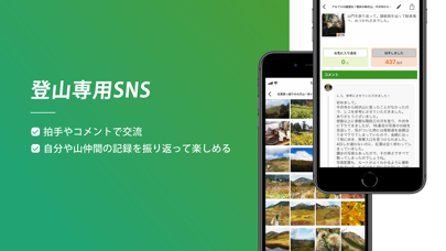 - 登山に関する情報量が充実。SNS機能を使って手軽に交流ができる