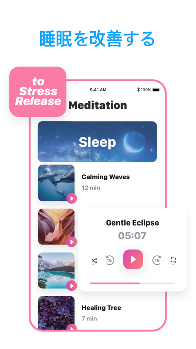 - 選べるヒーリング音楽の種類が豊富。リラックス時のBGMにも使える