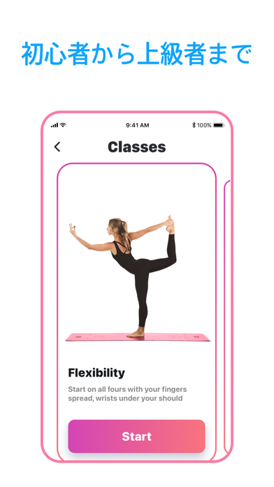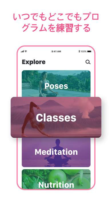 ポーズ、クラス(バランス、強さ、柔軟性)の中から初級、中級、上級から選択しビデオを見ながらヨガが出来ます。
