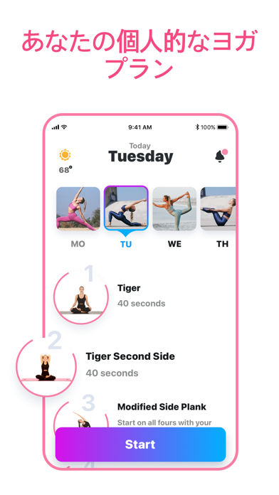 1つ1つのポーズに簡単についてけるように、各ポーズのビデオが用意されたヨガアプリ。