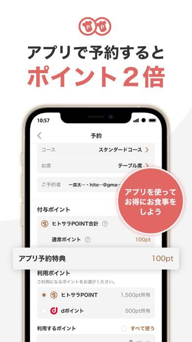 - 予約するたびポイント獲得。次回以降の食事代が割引になるからお得