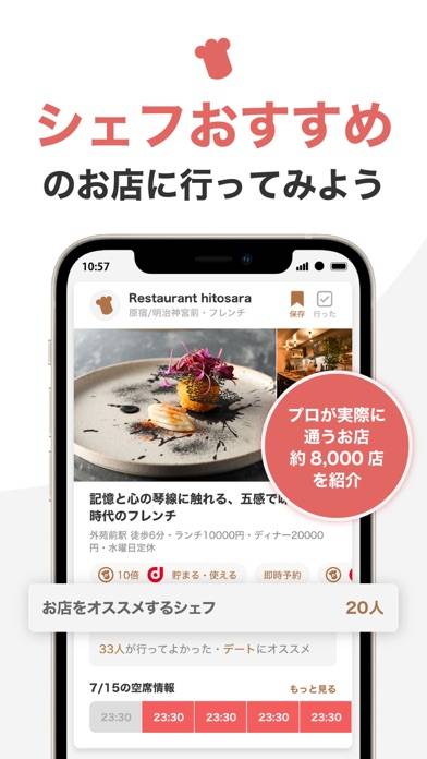 プロの料理人が認めたお店の情報が掲載されているグルメアプリ。実際にお客さんとしてお店を訪れたシェフが、料理の内容や店内の雰囲気などを紹介しています。トレンドのオシャレな料理や、デートに使えるお店などの情報を多数掲載。口コミを見ながら参考にしてみてください。
