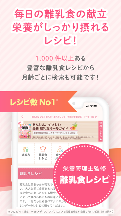 離乳食がとっても役に立ちました。管理栄養士監修なのでクックパッドより安心♫ また、専門家相談が無料なので、こちらもオススメ。助産師さんや管理栄養士さんにいつでも気軽に質問ができちゃいます。