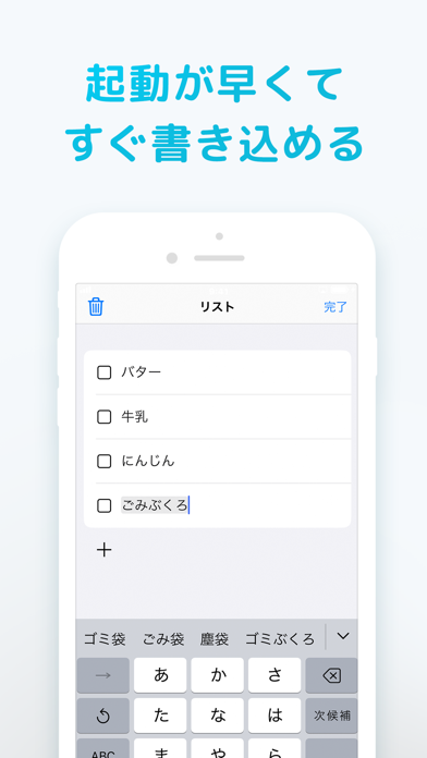 シンプルで使いやすい。スーパーでの買い物の時に、必要な食材をリスト化していますが、操作も簡単でひと目で分かりやすいのがいいですね。