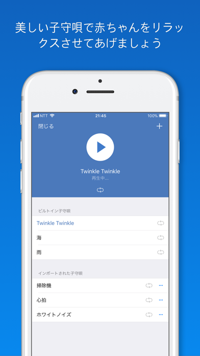 - 赤ちゃんに話しかけたり、子守唄を流したりできて、寝かしつけにも使える