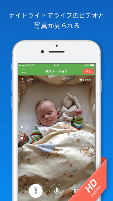 - ライブHD映像とクリアな音声で赤ちゃんの様子をリアルタイムに確認できる