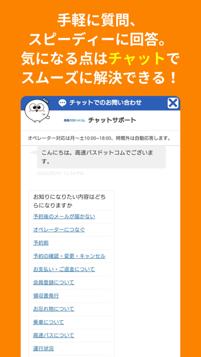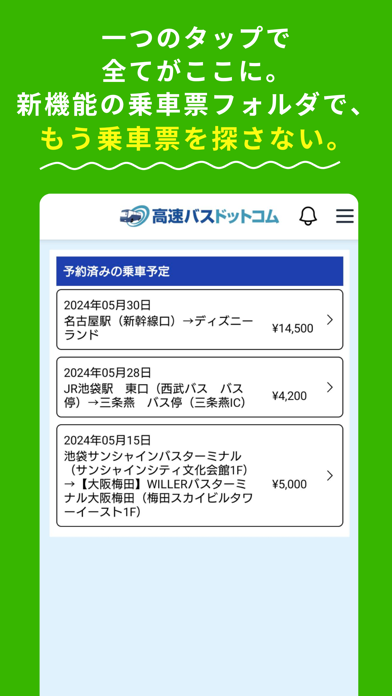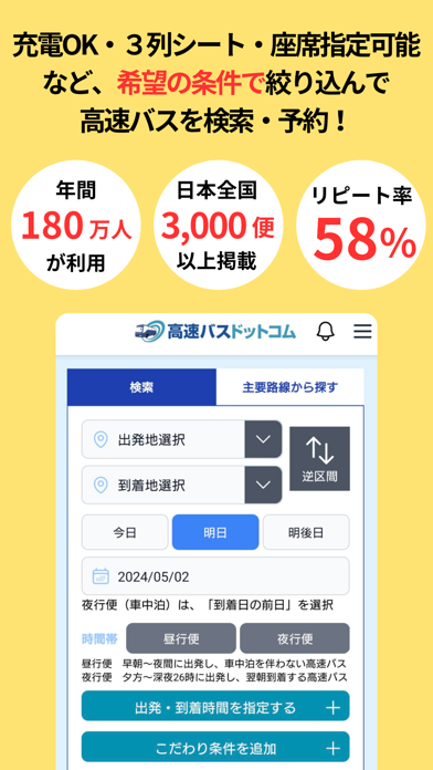 - 予約サイト「高速バスドットコム」アプリ版。空席情報をすぐに取得