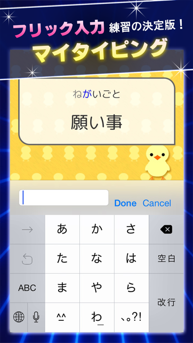 このアプリでは、自分に合ったキーボードを選べます。端末標準のキーボードとアプリオリジナルのキーボードがあり、普段使用しているキーボードをそのまま使うことも。自分のフリック入力に合ったキーボードを選べば、もっと効率的に練習を行えます。