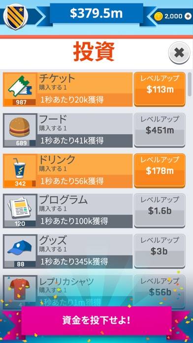 サッカーのクラブを経営するゲームです。経営といってもお金は1秒ごとにどんどん入って来ますが、それをどれだけ効率よく稼げるか。$、k$、M$までは分かりますが、そのうちお金が増えすぎてB$やAA$などよくわかんなくなってきます笑